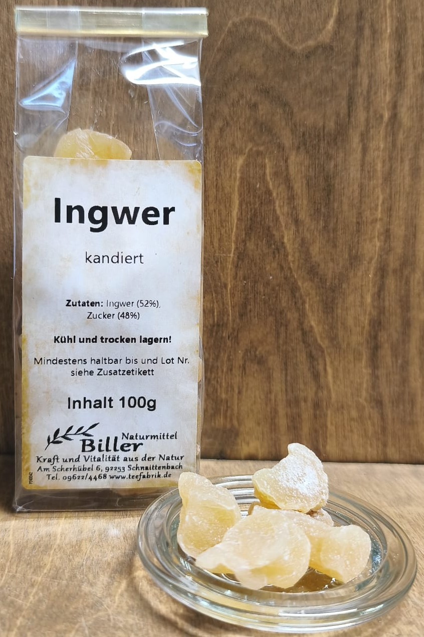 Die großen Ingwerstücke (ca. 10 x 10 mm) haben eine angenehm milde Schärfe und weiche Konsistenz.