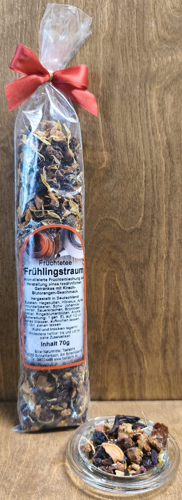 Zutaten: Hagebutten, Hibiskus, Apfel, Holunderbeeren, schwarze Johannisbeeren, Sauerkirschen, Brombeerblätter, Ringel-