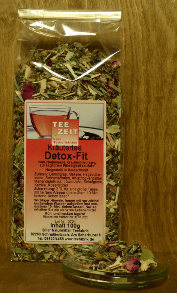 Zutaten: Lemongras, Melisse, Hagebuttenkerne, Bohnenschalen, Artischockenblätter, Mariendistelkraut, Löwenzahn,