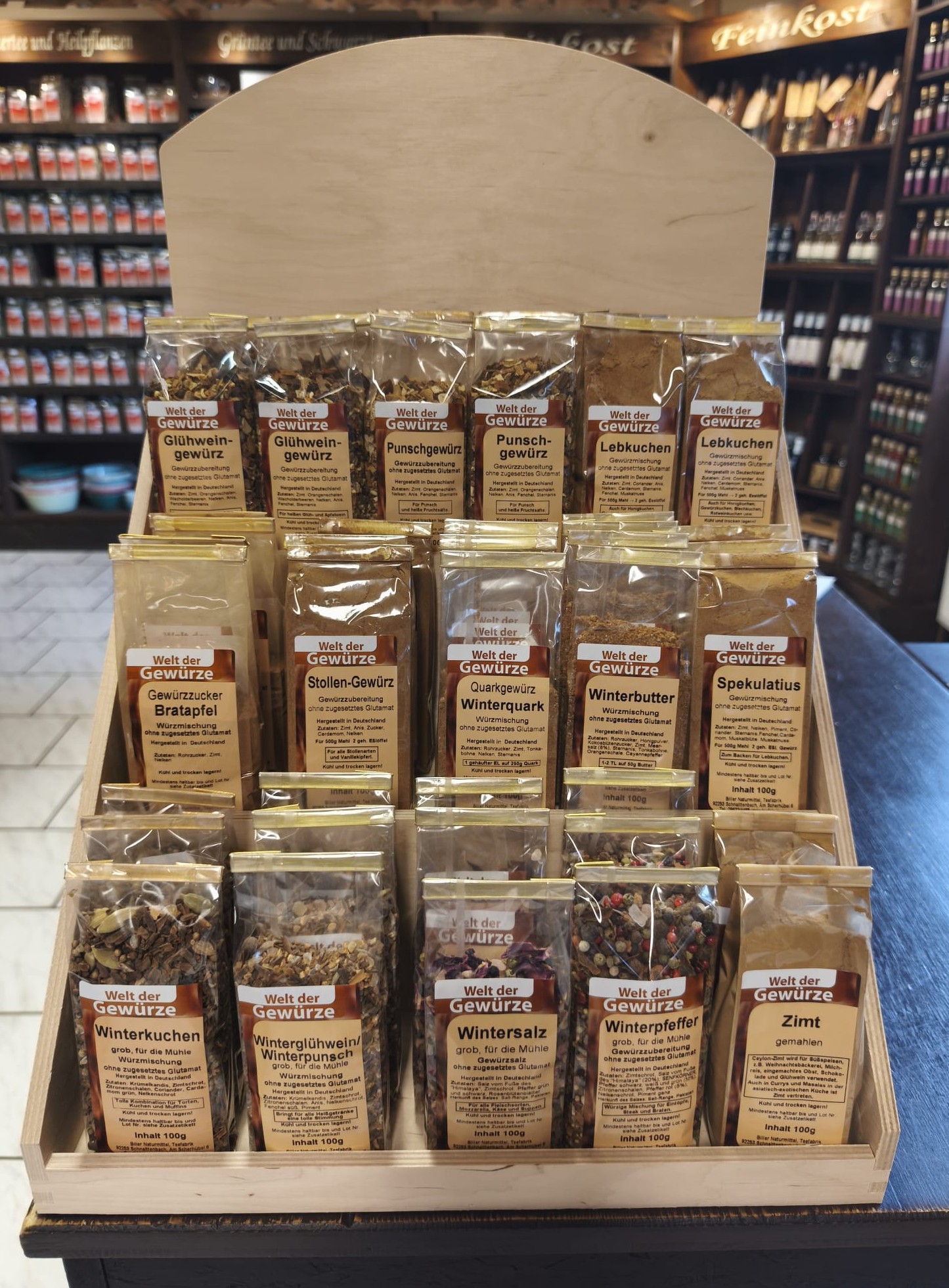 Thekendisplay weihnachtliche Gewürze, Holz, 44 Stück